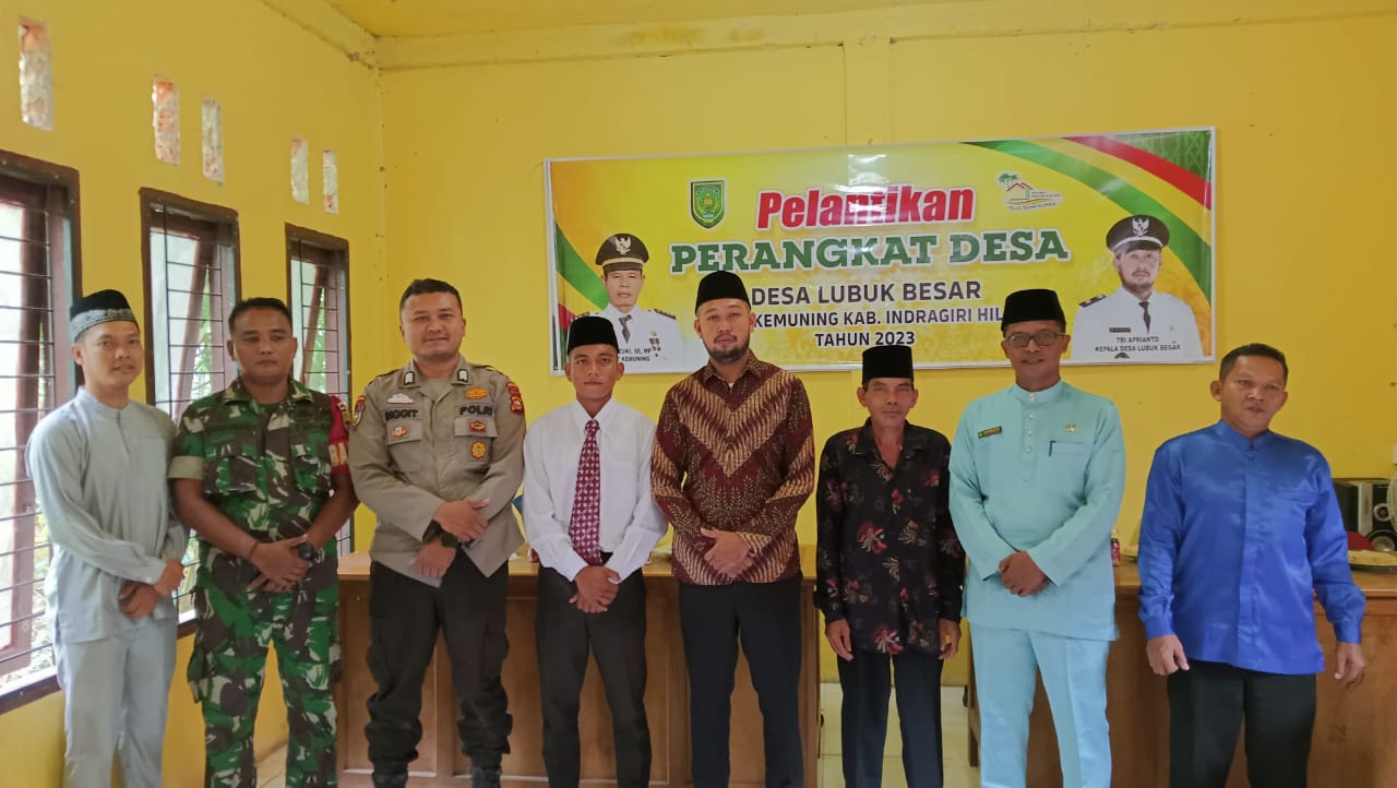 Desa Lubuk Besar, Kecamatan Kemuning, Kabupaten Indragiri Hilir, Jum'at 24 November 2023 - Suasana haru dan kegembiraan terpancar jelas di Desa Lubuk Besar pada acara pengucapan sumpah dan janji serta pelantikan Kepala Dusun Kemang Pelita (KADUS Kemang Pelita) yang berlangsung dengan khidmat.