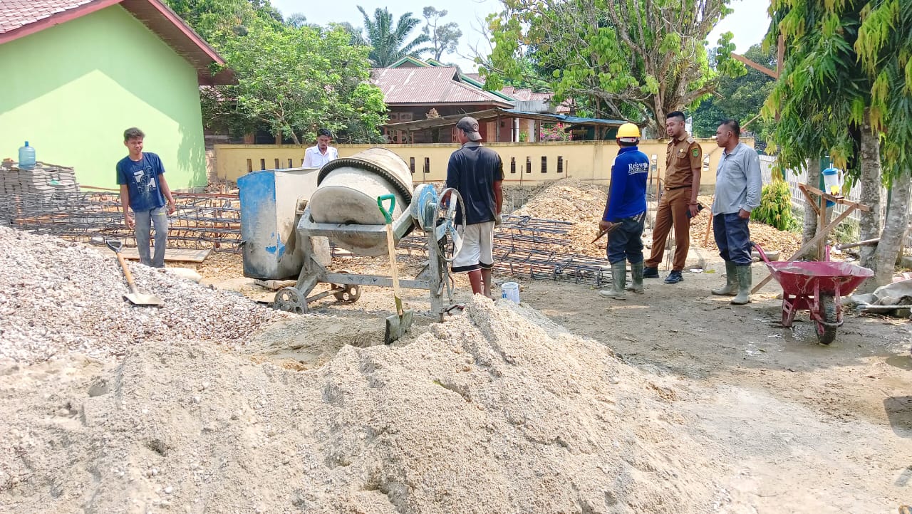 Kepala Desa Lubuk Besar Meninjau Langsung Ke Lokasi Pengerjaan Proyek Ruang Kelas Baru SDN 003 Desa Lubuk Besar