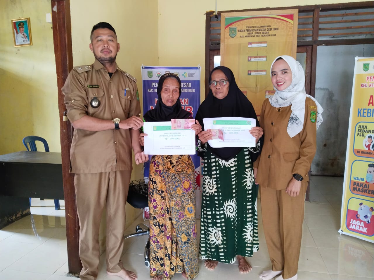 BLT diberikan kepada warga yang layak menerima sebanyak 79 KPM berupa uang tunai sebesar Rp. 300.000/bulan. Kali ini pencairan selama 2 bulan yaitu bulan November dan bulan Desember Tahun anggaran 2022. Penerima BLT menunjukkan Fotocopy KK dan KTP atau dapat diwakilkan keluarga yang masih dalam satu KK.